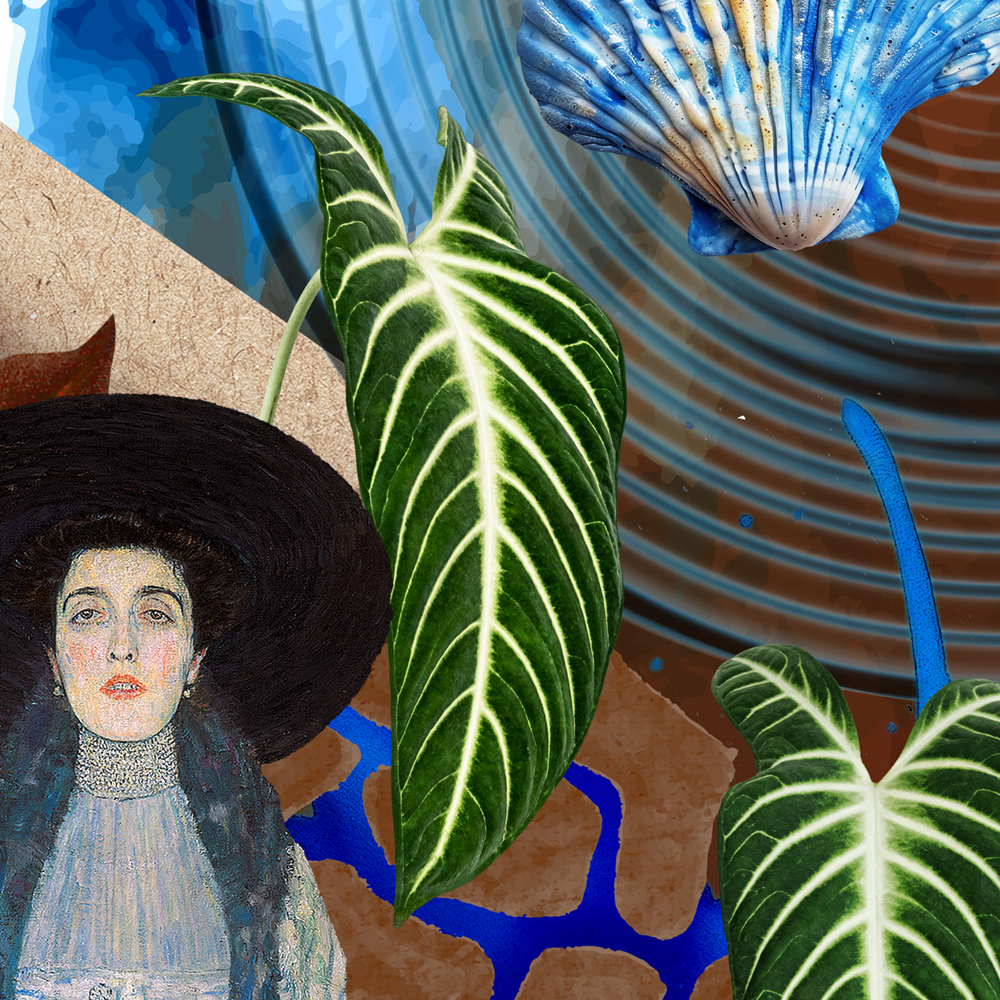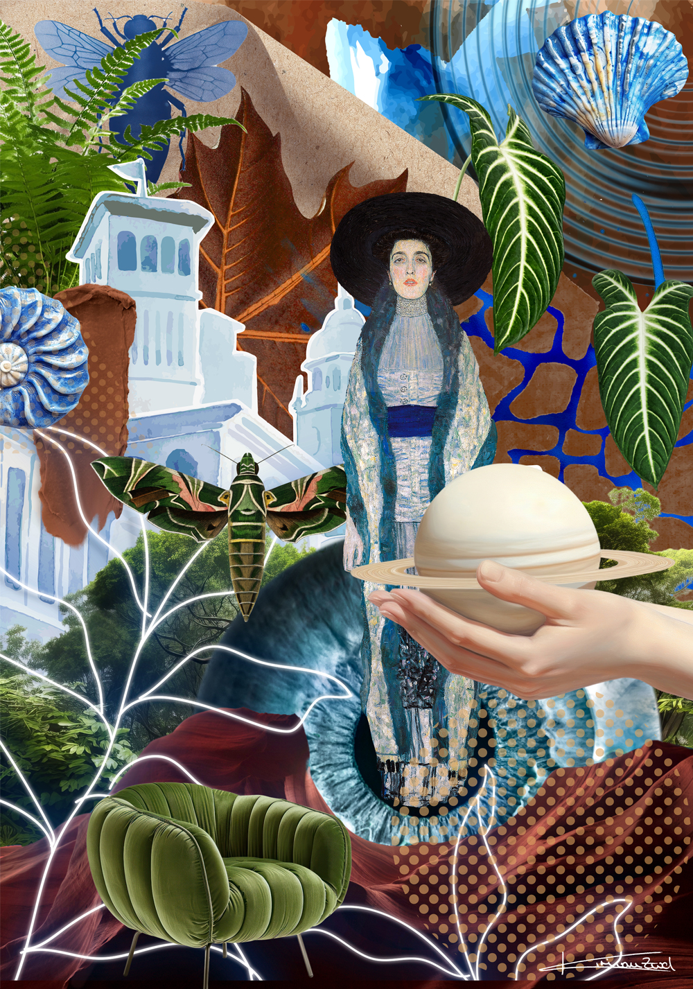 Wie ein flüsternder Hauch vergangener Epochen, inspiriert von Klimts Gold und Glanz, erhebt sich dieses Werk in tiefem Grün, königlichem Blau und erdendem Braun.