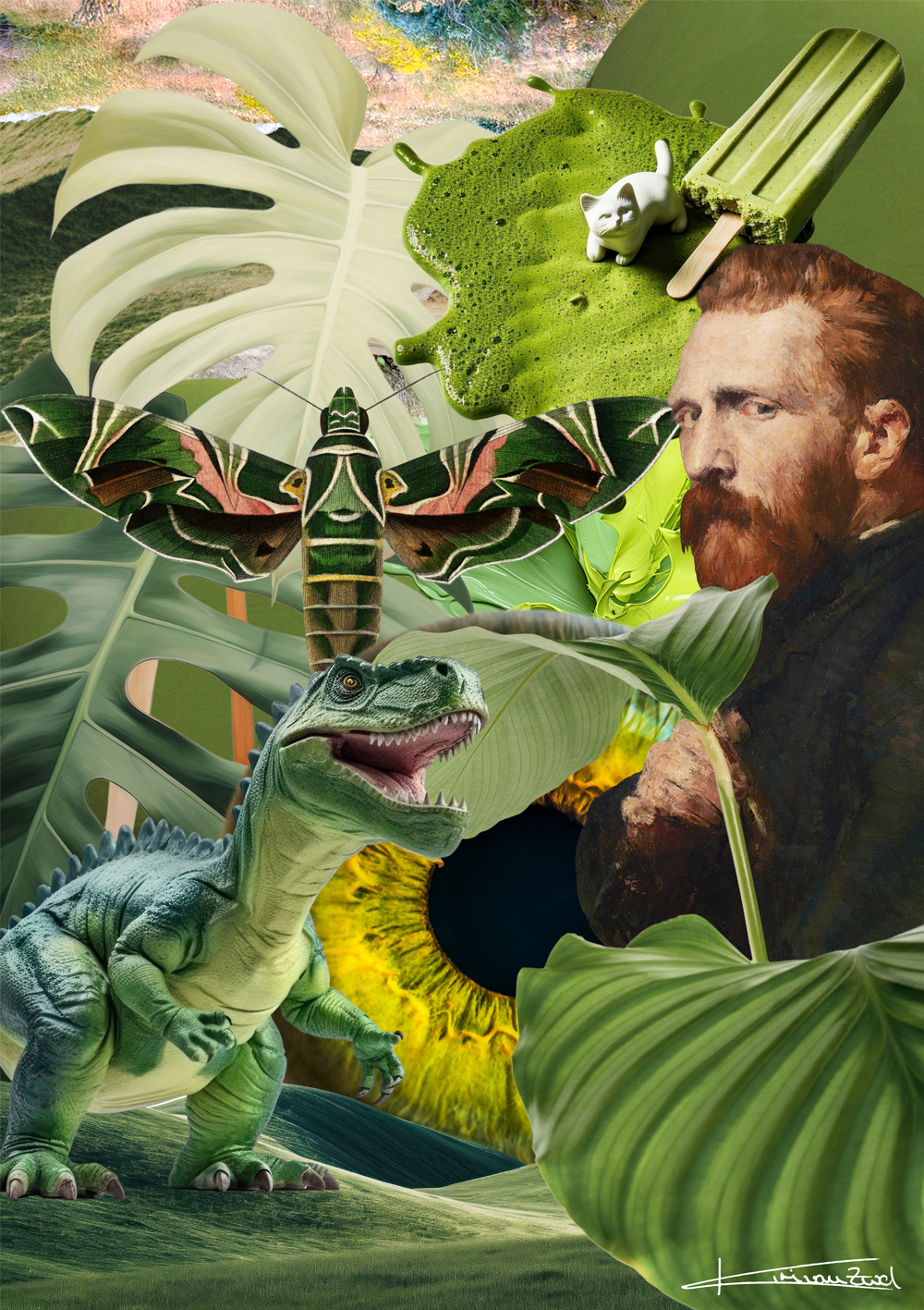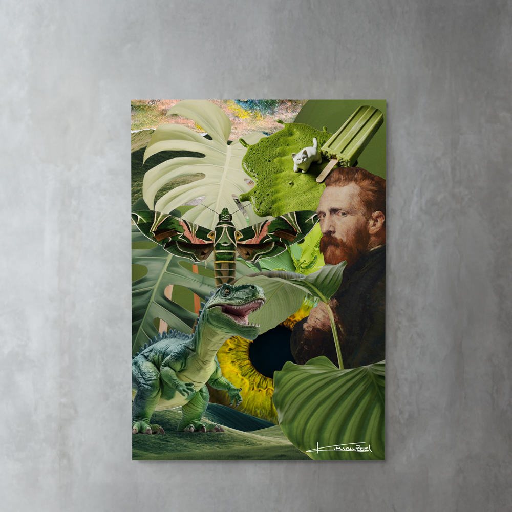 Wie ein leiser Pinselstrich aus der Vergangenheit, verwoben mit der Moderne, atmet dieses Werk van Goghs ungestüme Seele. Starkes, emotionales Grün durchzieht die Komposition. Hier mischt sich die Tiefe der Tradition, die japanische Zeremonie des Matcha-Tees, die meditative Stille eines alten Rituals.